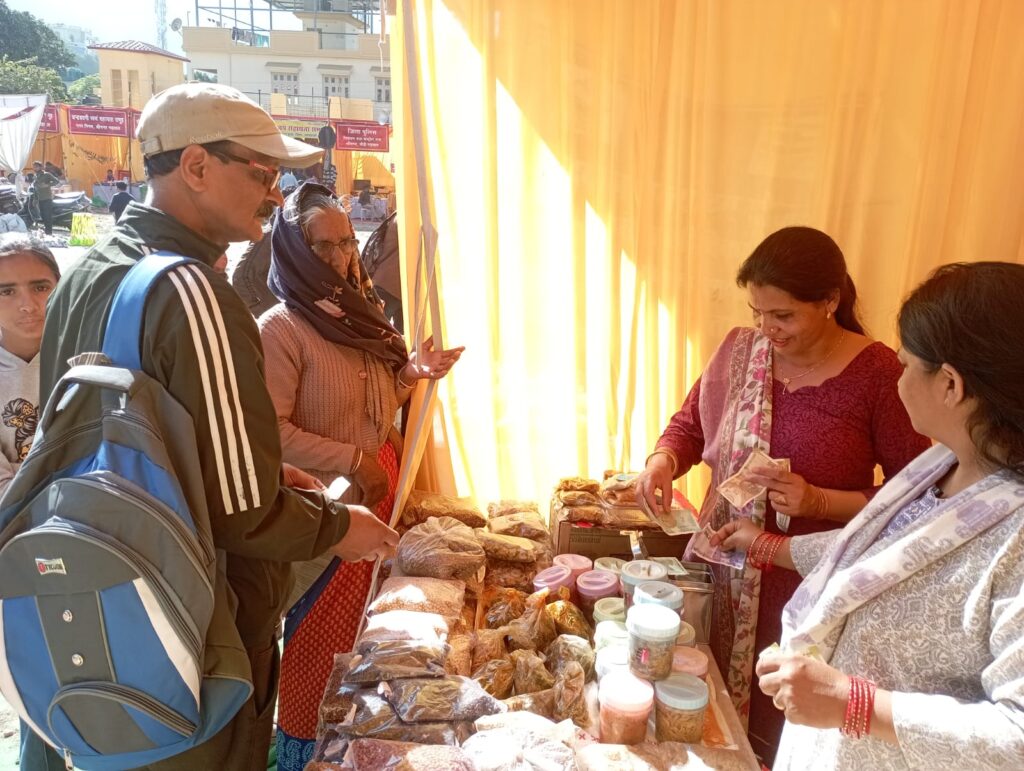श्रीनगर। बैकुंठ चतुर्दशी मेले में स्वयं सहायता समूहों की महिलाओं के द्वारा बनाये गये उत्पादों को नई पहचान मिल रही है।मेले में पहुंच रहे लोग स्थानीय महिलाओं द्वारा तैयार किये गये उत्पादों को खरीद रहे हैं।महिलाओं द्वारा आलू, प्याज़, दाल की पकौड़ी, सोयाबीन, सूजी, मंडुवे, कंडाली के चिप्स व पापड़, लेमन टी, आटे के बिस्किट, करेला,नींबू, कटहल का अचार, आँवला कैंडी, घरेलू नमक, महिलाओं के लिये सिंदूर, स्थानीय दालें(ग़हत, सोयाबीन) सहित चौरास के रानीहाट में तैयार हो रहे थ्री डी उत्पाद सहित बनाये गये क्राफ्टों को बेचा जा रहा है। मातृशक्ति स्वयं सहायता समूह की अंजना घिल्डियाल ने बताया कि उन्होंने लहसुन, हरी -लाल मिर्ची, आम व मिक्स अचार को तैयार किया गया जिसे बड़ी मात्रा में लोगों ने खरीदा। बताया कि वह पैन्तालीस किलो अचार बेचा है।हल्दी, तिल के साथ घरेलू नमक को भी लोग पसंद कर रहे हैं। आवास विकास मेला परिसर में नगर निगम श्रीनगर के अंतर्गत भगवती स्वयं सहायता समूह, सरस्वती, ज्वालपा, दुर्गा, मन्दाकिनी, चन्द्रबदनी, लक्ष्मी, कंसमर्दनी स्वयं सहायता समूहों की महिलाओं द्वारा खुद तैयार किये गये उत्पादों को बेचा जा रहा है।