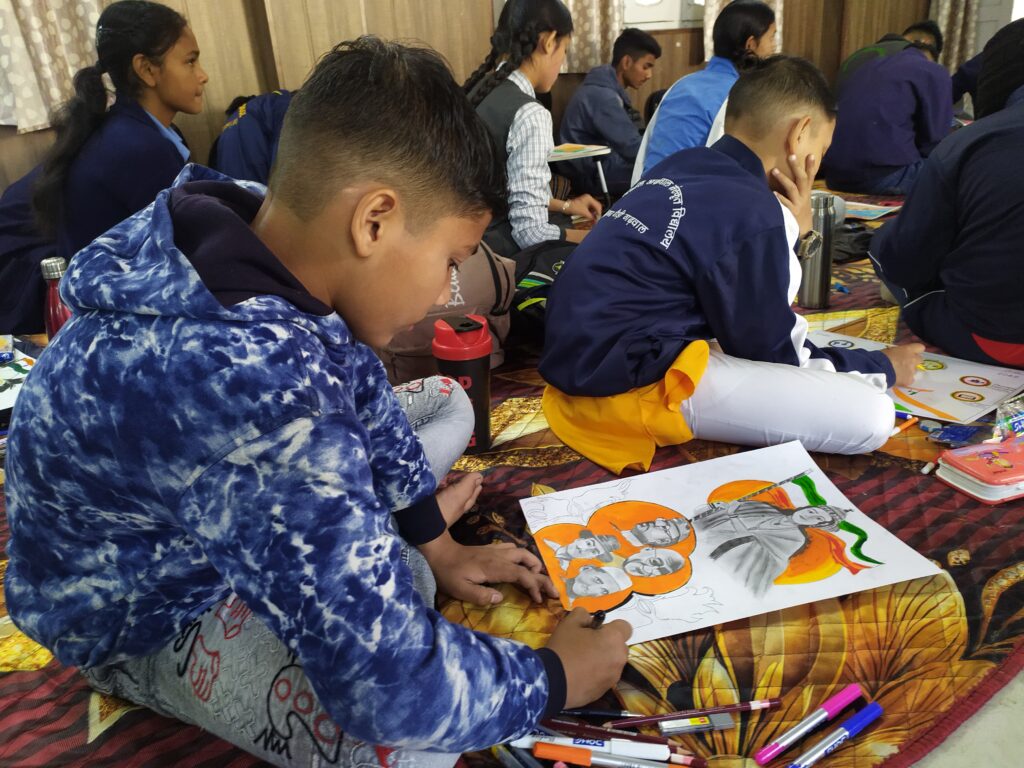बैकुंठ चतुदर्शी मेला एवं विकास प्रदर्शनी 2024 नगर निगम सभागार में चित्रकला प्रतियोगिता