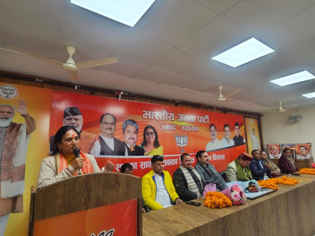 रुद्रप्रयाग विधानसभा के विधायक व केदारनाथ विस उप चुनाव में संयोजक रहे भरत सिंह चौधरी ने जिला कार्यालय में केदारनाथ विस की विधायक के पहुंचने पर स्वागत कर पुष्य गुच्छ भेट करते हुए कहा कि केदारनाथ विस की जनता ने मातृशक्ति पर विश्वास करते हुए नई मिसाल पेश की है। उन्होंने कहा कि जनता ने भाजपा के विकास के मॉडल को तरजीह देते हुए विपक्ष के झूठी बातों को दरकिनार किया है। कहा कि विधायक आशा नौटियाल के नेतृत्व में केदारनाथ विस में विकास को नई गति मिलेगी। उन्होंने कहा कि आगामी निकाय चुनाव को लेकर रणनीति बनाई जा रही है। केदारनाथ विस में जीत की तरह आगामी निकाय चुनाव में भी जनपद की सभी सीटों पर भाजपा जीत दर्ज करेगी। भाजपा के जिलाध्यक्ष महावीर सिंह पंवार ने कहा कि केदारनाथ विस उप चुनाव में एक-एक कार्यकर्ता ने अपनी भूमिका बखूबी निभाई है। इसी ऊर्जा के साथ हमें आगामी निकाय चुनाव में मैदान में उतरकर जीत दर्ज करनी है। उन्होंने कहा कि केंद्र और राज्य सरकार की जनकल्याणकारी योजनाओं का जनता को लाभ मिल रहा है। उन्होंने बताया कि आगामी 8 दिसंबर को मुख्यमंत्री पुष्कर सिंह धामी रुद्रप्रयाग जिले में पहुंचेंगे, जिसमें सभी पदाधिकारियों व कार्यकर्ताओं की मौजूदगी अनिवार्य है। उन्होंने कहा कि सभी जिम्मेदार कार्यकर्ताओं को सक्रिय सदस्य बनना अनिवार्य है।