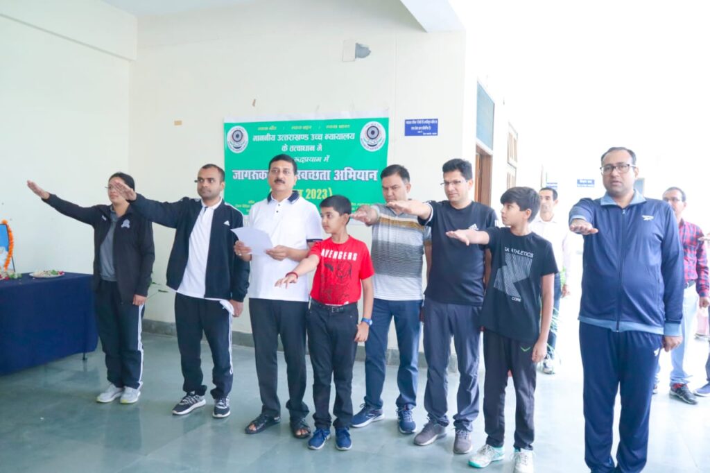 इस अवसर पर मा. जिला न्यायाधीश श्री श्रीकांत पांडेय ने कहा कि मा. उच्च न्यायालय उत्तराखंड के तत्वाधान में 12 जून से 18 जून, 2023 तक विशेष स्वच्छता सप्ताह आयोजन किया गया तथा आज अंतिम दिन पूरे जनपद में स्वच्छता जागरूकता अभियान चलाया गया जिसमें न्यायालय सहित जिला प्रशासन, पुलिस व अन्य विभागों के अधिकारियों एवं कर्मचारियों द्वारा प्रतिभाग किया गया जिससे कि जनपद वासियों को पर्यावरण के संरक्षण एवं संवर्द्धन के लिए अपने घर, आंगन के साथ-साथ अपने आसपास के क्षेत्र को साफ-सुथरा रखने के लिए जागरूक किया गया। उन्होंने कहा कि स्वच्छता देश के विकास के लिए आवश्यक तत्व है। मा. उच्च न्यायालय उत्तराखंड के आह्वान पर पूरे उत्तराखंड के कोने-कोने में स्वच्छता अभियान चलाया जा रहा है जिसमें सभी अधिकारी, कर्मचारियों द्वारा इसमें बढ चढकर इसमें अपनी भागीदारी सुनिश्चित की गई।