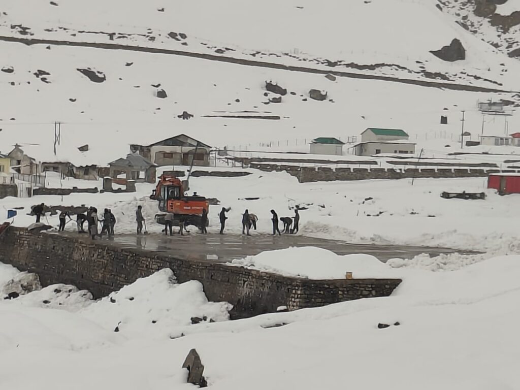 अधिशासी अभियंता डीडीएमए राजविंद सिंह ने जानकारी देते हुए बताया कि हालिया बर्फबारी के चलते धाम क्षेत्र एवं यात्रा मार्ग में 4 से 5 फीट तक बर्फ जम चुकी है। इसके बावजूद टीमों द्वारा निरंतर प्रयास करते हुए पूर्व में लिनचोली से केदारनाथ धाम तक लगभग 4 से 5 फीट चौड़ाई में पैदल मार्ग को सुचारु किया गया था।उन्होंने बताया कि मौसम सामान्य होते ही प्रशासन की टीमों ने बिना समय गंवाए पुनः बर्फ हटाने का कार्य शुरू कर दिया है। धाम क्षेत्र में हेलीपैड, रुद्र पॉइंट से संगम सेतु तक मशीनों एवं मैनपॉवर के माध्यम से तेजी से बर्फ हटाई जा रही है।अधिशासी अभियंता ने यह भी बताया कि मौसम विभाग द्वारा आगामी दिनों में भी भारी बर्फबारी की संभावना व्यक्त की गई है, जिसके मद्देनजर प्रशासन पूरी तरह सतर्क है और आवश्यकता अनुसार मैनपॉवर एवं संसाधनों को बढ़ाया जा रहा है।जिला प्रशासन द्वारा स्पष्ट किया गया है कि श्रद्धालुओं की सुरक्षा, सुविधा एवं यात्रा के सुचारु संचालन के लिए हर स्तर पर तैयारियां सुनिश्चित की जा रही हैं। विपरीत परिस्थितियों के बावजूद भी प्रशासन की टीमों का समर्पण एवं कार्य के प्रति प्रतिबद्धता यह सुनिश्चित कर रही है कि यात्रा व्यवस्थाएं समय से पूर्ण हों।