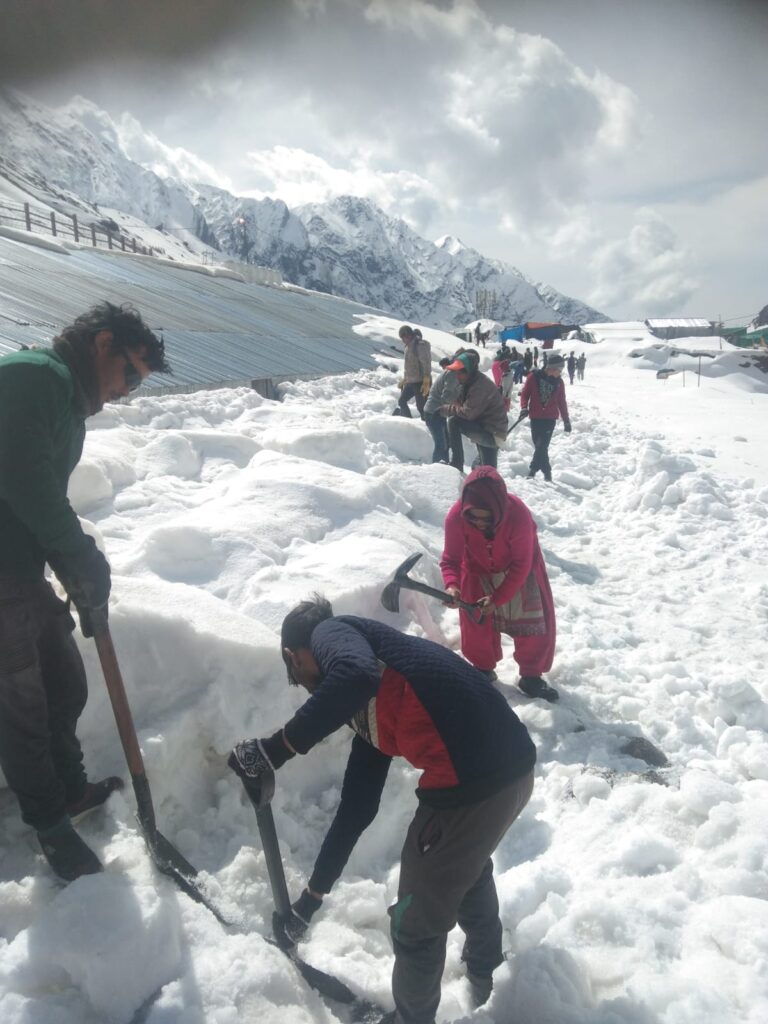 साथ ही हैलीपैड़ के समीप बर्फ हटाने का कार्य पूर्ण कर लिया गया है व श्रमिकों के हट से बर्फ हटाने का कार्य तीव्र गति से किया जा रहा है। इसके अलावा यात्रा मार्ग जिन स्थानों पर क्षतिग्रस्त हो रखें है उन स्थानों पर मरम्मत कार्य तेजी से किया जा रहा है।