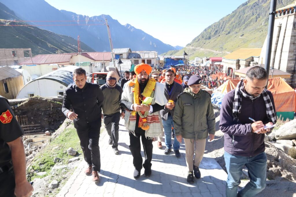 एकदिवसीय दौरे पर बाबा केदारनाथ धाम के दर्शनों को पहुंचे राज्यपाल लेफ्टिनेंट जनरल गुरमीत सिंह (से नि) का जिलाधिकारी डॉ सौरभ गहरवार एवं पुलिस अधीक्षक डॉ विशाखा वीआईपी हैलीपैड पर स्वागत किया। ड्यूटी पर मौजूद सभी अधिकारियों एवं कर्मचारियों का अभिनंदन करने के बाद राज्यपाल तीर्थ पुरोहित समाज से मिले। पुरोहित समाज ने परंपरागत मंत्रोच्चारण के साथ उनका स्वागत एवं अभिनंदन किया। राज्यपाल ने सभी तीर्थ पुरोहितों से भेंट करने के बाद बाबा केदारनाथ मंदिर में प्रवेश कर विशेष पूजा अर्चना कर संपूर्ण विश्व एवं मानवता के कल्याण की कामना की। इस दौरान उन्होंने उत्तराखंड के सतत विकास के लिए भी बाबा केदार से आशीर्वाद मांगा। पूजा अर्चना के बाद राज्यपाल ने मंदिर प्रांगण में खड़े श्रद्धालुओं का अभिवादन कर बाबा केदार के जयकारे भी लगवाए।