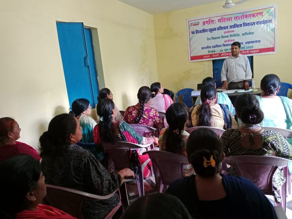 श्रीनगर/कीर्तिनगर। भारतीय उद्यमिता विकास संस्थान अहमदाबाद द्वारा क्रियान्वित और रेल विकास निगम लिमिटेड समर्थित प्रोजेक्ट प्रगति: इम्पावरिंग वूमेन के तहत महिलाओं को आत्मनिर्भर बनाने के उद्देश्य से 14 दिवसीय सूक्ष्म कौशल उद्यमिता विकास कार्यक्रम (एमएसडीपी) का शुभारंभ गुरूवार को कीर्तिनगर ब्लॉक के देवली गांव में हुआ। प्रशिक्षण कार्यक्रम का शुभारंभ ग्राम प्रधान सरिता देवी और परियोजना अधिकारी दिलीप सिंह कुशवाहा ने किया। ऋषिकेश कर्णप्रयाग रेल लाइन प्रभावित गांव देवली की महिलाओं को प्रशिक्षण में मोमबत्ती, धूपबत्ती, अगरबत्ती आदि उत्पाद बनाने की तकनीक मुख्य प्रशिक्षक सिखाएंगे।आरवीएनएल ऋषिकेश और ईडीआईआई अहमदाबाद मिलकर महिलाओं को स्वरोजगार के लिए निपुण बनाने का कार्य कर रही है, जिससे महिलाएं आत्मनिर्भर बने और अपना स्वरोजगार स्थापित कर नए अवसरों का लाभ उठाएं।